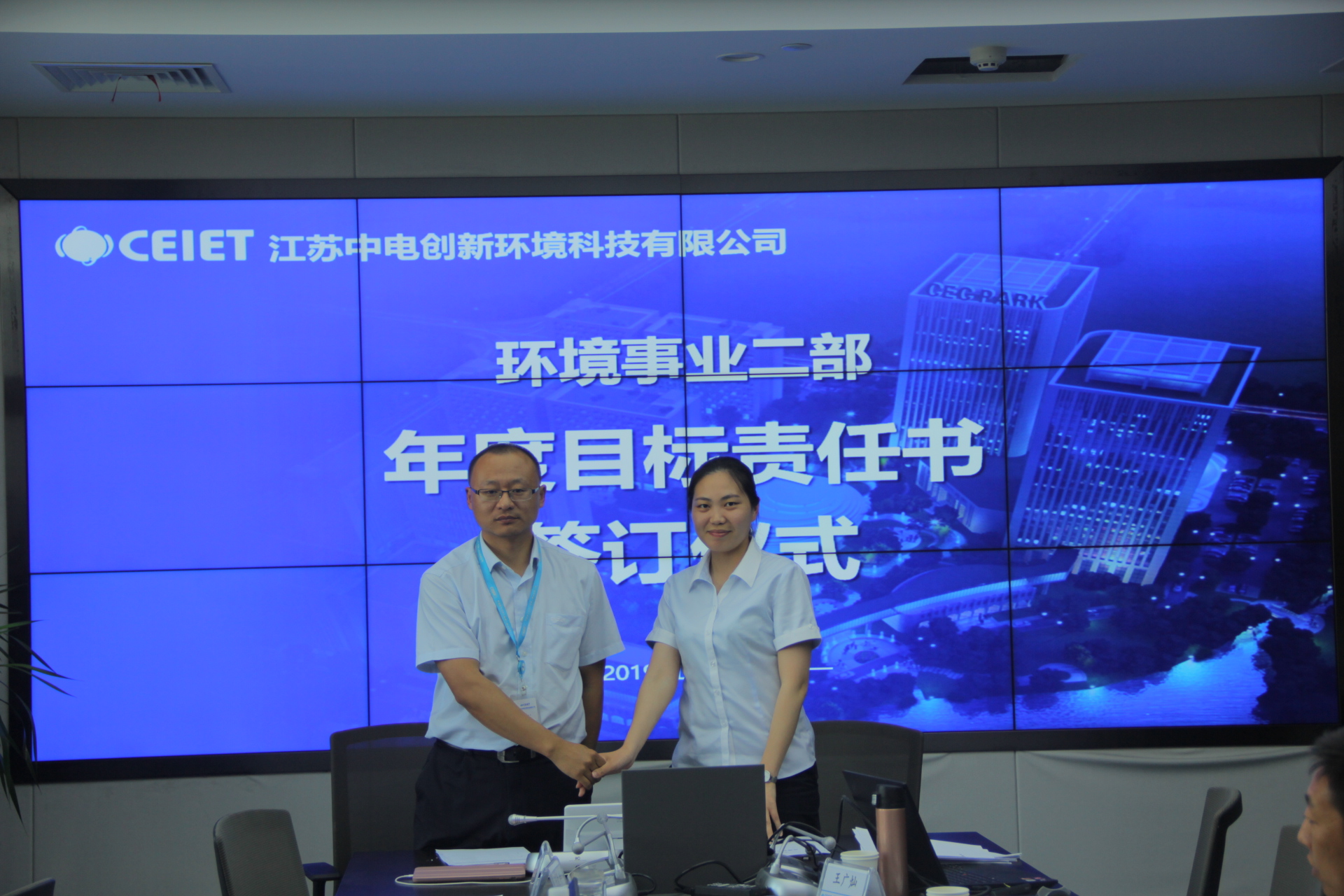 深入贯彻落实党风廉政建设责任,增强忧患意识,坚持问题导向,中电环境二支部陈爱存书记与环境事业二部各部门负责人、项目经理签订2019年《党风廉政建设责任书》。